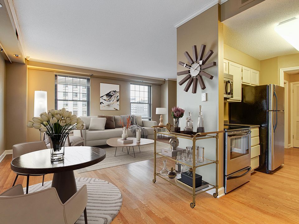 This 1 bedroom 1 bathroom corner unit at The Claridge House offers city overlooks. The spacious living/dining area is larger than many one bedroom units in the building and features hardwood floors. The kitchen features stainless steel appliances. The Claridge House is a controlled access building on the trolley line downtown at the corner of Main St. and Adams. The building features a rooftop deck, indoor pool, fitness center, and onsite security! The Claridge House is located on the trolley line, a few blocks from the University of Memphis Law School, and lots of great restaurants. Free laundry available on every floor of building. A parking garage can be conveniently accessed from the 7th floor of the building for an additional monthly fee. Professionally managed by 901 Real Estate Services *Additional fees may apply. Please see below. Some photos may be virtually staged.* *Typical fees for approved applicants, not including security deposit: one-time admin fee of $250; one-time pet fee & monthly pet rent, determined by PetScreening per pet; any fees associated with specific communities or buildings - please ask the Property Manager for more information.* **Avoid scams: We do not post our properties on Facebook Marketplace or Craigslist and will never ask you to pay anything through CashApp, Zelle, or Venmo.** Typical fees for approved applicants, not including security deposit: one-time admin fee of $250; one-time pet fee & monthly pet rent, determined by PetScreening per pet; any fees associated with specific communities or buildings - please ask the Property Manager for more information. Credit minimum of 625. No smoking in unit.