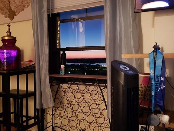 JUST REDUCED! AVAILABLE NOW! A beautiful large studio condo on the ninth floor with a view of the Mississippi River, the illuminated bridge and Mud Island in a downtown Memphis building listed on the National Register of Historical Places. This condo offers beautiful hardwood floors and high smooth ceilings as well as a kitchen with stainless steel appliances, including a refrigerator with an automatic ice maker, a dishwasher, a garbage disposal, a microwave and a full-sized electric stove with a glass cooktop. It also offers ample cabinet space with some glass-front panels. The living area is bright and cheerful with built-in shelving and cabinets attached to a queen-sized Murphy bed (optional to use). The bathroom includes a separate dressing area with a vanity that includes storage in drawers and cabinets, a tub and shower combination, a toilet and a linen closet.. A walk-in closet and a separate entryway closet provide ample storage space. Water and parking are included in the rental fee. The building provides free washer and dryer usage in a separate laundry room on the same floor. Amenities include a beautiful public lobby area with new furnishings, an indoor swimming pool and a hot tub {under repair}, a large gym with ample equipment, a ping pong table in the wet area, a bicycle storage room, a party room with a river view and an outdoor rooftop terrace with gas grills and seating for outdoor dining with a view of the Mississippi for viewing sunsets. A computer office/mailroom for packages are on the main floor. A coffee shop and a restaurant are located on the premises. This condo is perfectly located for those at St. Jude/ALSAC, the U of M Law School and UT Health Sciences Center as well as downtown employees or for anyone desiring downtown living. Please contact the owner immediately for viewing and rental. Parking in a garage connected to the building by a catwalk is included in tne rental fee. A one-year lease and proof of funds and references will be required. One-year lease required with deposit and first and last month's rent. A two-year lease is possible.