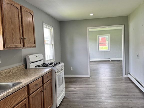 Charming ranch-style home featuring a breezeway between the garage and home. Attached one-car garage and a lengthy driveway. As a bonus, the property comes with an extra vacant lot along the right side of the home offering endless possibilities for gardening, recreation, or expansion. There is a concrete slab from a previous shed. This ranch home has had many updates. Enter the home into the kitchen/dining area and the living room has a nice sized window for natural daylight. There are two bedrooms and a full remodeled bathroom. One can enter the breezeway from the front or the rear to the opened private rear deck. Many perennials throughout. New hot water heater.