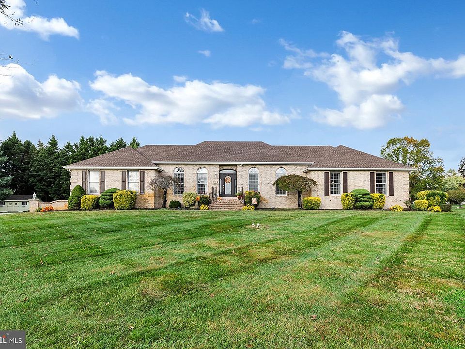 One floor living at its best! This stunning brick front ranch is set on over a half acre manicured lot. This custom ranch has been built with superior materials and updated throughout. The custom front door with transom window invites you into the home. The foyer has 9 ft ceilings, crown molding and hardwood flooring. The formal living room has floor to ceiling windows with palladium tops that illuminate this great room. The freshly painted neutral walls and the wide plank natural cherry floors and crown molding highlight the room. The formal dining room has the 9 ft ceilings, crown molding and tastefully painted walls in decorator colors. The dining room can accommodate a very large table. The dining room opens to the kitchen making serving meals a breeze! The rich wide plank hardwood floors are featured throughout most of the first floor. The heart of the home is the gorgeous updated kitchen. The kitchen has an abundance of cabinets, stainless steel appliances and granite counter tops. The subway glass backsplash and black hardware are nice accents. The deep composite sink faces the family room so when entertaining you are part of the conversation. The center island adds additional prep and cabinet space. The kitchen has a breakfast bar that provides additional seating in the kitchen. The breakfast area has a wall of windows that overlooks the private backyard and patio. The oversized laundry room has cabinets a tub and a door that leads to the back yard. The floor plan of this ranch is the ideal set up. The kitchen opens to the family room. The family room has a French door leading to the back patio and a boxed bay window. The hardwood hallway leads to the wing with the bedrooms. The main bath has crisp white cabinets with nickel accents. The master suite has beautiful views of the private manicured backyard. The room is neutrally painted with neutral carpet. The luxurious master bath has been remolded with 12x 12 ceramic tile floors a white mission style cabinet base with double sinks, and nickel accents. The mosaic backsplash and contemporary lighting are fabulous! The newer frameless shower doors enclose the oversized shower. The other 2 bedrooms are generously sized and neutrally decorated with neutral carpet. Enter the basement through the open staircase with stairway lighting. The basement is a world of its own as it is under the entire footprint of then home. The newer ceramic look flooring is very easy care, the walls have been freshly painted as well. There is plenty of room for a recreation room, gym and plenty of room for offices. The storage area is a great place to set up a workshop or craft area. The walk up basement is a terrific feature so you can move furniture in and out without going through the house. The private patio is a great space for outdoor entertaining. The patio was constructed to hold a sunroom if you ever wanted to put an addition on. The flat backyard has plenty of room for a pool. Additional features include roof less than a year old, Ac is 2018, heater 2015, water softener 2018. The seller has over $65,000 Of updates in over the last 10 years. Additional appointments include solid 6 panel doors and custom millwork, alarm system and a house generator that covers heater, AC, sump pumps master bedroom and fridge. As life has changed this home meets all the criteria for life at home. This home is absolutely immaculate and move in ready.