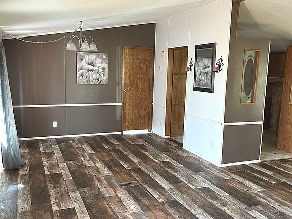 Three bedrooms and two full baths double wide mobile home with a huge living room and open floor plan. Expanded laundry area could house a desk, bookshelves, or freezer. Master bedroom features a full updated bathroom and walk in closet. Shaded lot, front deck. Few minor repairs and this property will shine. Owner says selling "as is".