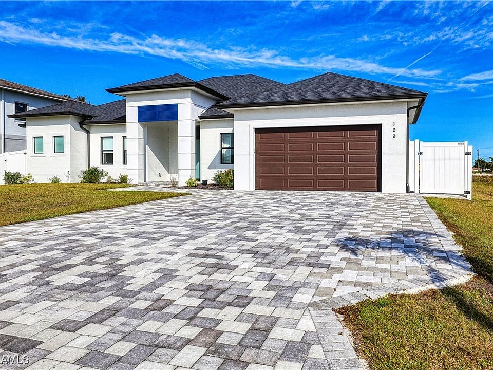 UNIQUE OPPORTUNITY! Better than new, this stunning home has been barely lived in and is situated on a wide, intersecting freshwater canal with breathtaking views! This location is unmatched! The spacious floor plan boasts high ceilings and numerous upgrades, featuring 4 bedrooms and 3 bathrooms within a generous 2,236 square feet of living space. The open concept design allows for seamless flow, highlighted by a gorgeous kitchen with a waterfall quartz island. The luxurious master suite includes walk-in closets and double vanities. Enjoy entertaining in the outdoor living area, complete with an outdoor sink and kitchen area and ample space for gatherings. Notable upgrades include impact doors and windows, tray ceilings, quartz countertops, an epoxy-sealed garage floor, a paver driveway, a fenced yard, and much more!