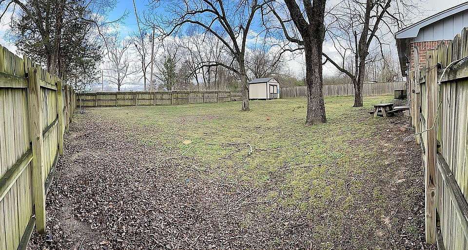 Brick home with a large fenced in backyard with storage building, recently replaced tankless water heater, furnace, and ac unit.