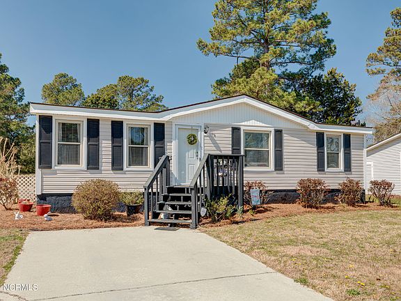 Newer Stainless Steel appliances, LVP flooring and new roof in 2021/22. Home has been maintained and some updates have been completed. Outdoor double door storage, screened back porch, beautiful landscaping and lush bermuda grass make this home stand out. Two bedrooms and 2 full bathrooms, separate laundry room and an HOA that covers trash, water, community septic AND grass cutting makes the home appealing for buyers looking to have everything taken care of for a low cost of $132 per month. Topsail Greens has always been an affordable and desirable neighborhood located in the Topsail School District to use as a personal home, second home or rental/investment property. Call today for an appointment or have your agent schedule a showing.