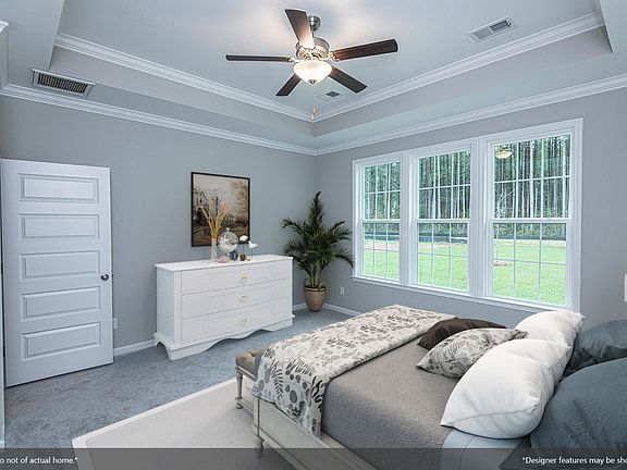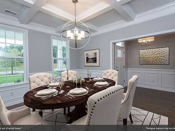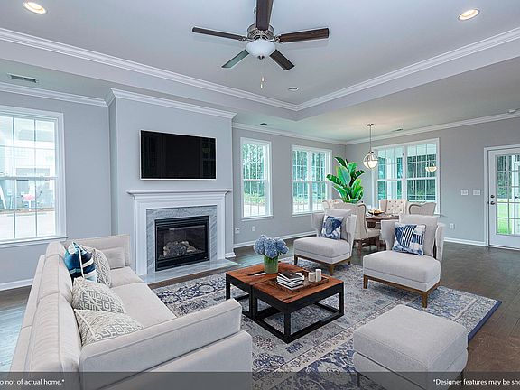 Welcome home to our Chadwick! This home includes three bedrooms with and large second floor bonus and two bathrooms. Enter off of the large front porch into the entryway featuring a coffered ceiling formal dining room that flows into the open-concept family room, kitchen and breakfast area. The family room has a gorgeous fireplace and tray ceiling. The secondary bedrooms are separated from the primary bedroom which allows privacy for you and your guests. The primary suite is complete with beautiful marble countertops, shower/tub combination, enclosed water closet and linen. The primary bedroom has its own private access to the laundry room through the walk-in-closet, making putting laundry away a breeze! You can also access the laundry from the kitchen. There is a large garage entry perfect for a convenient drop zone with plenty of closets and storage space.