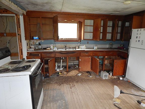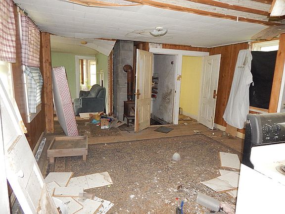 Great location sitting on 4.65 acres. Open kitchen to dining area, living room, den and full bath on the first floor. Two bedrooms on the 2nd floor. 2 car garage/barn. Home is being sold as is. Needs total rehab.