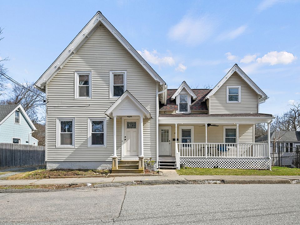 A charming front porch, perfect for enjoying lazy afternoons or sipping morning coffee, welcomes you home. Relax after a long day or entertain in the cozy living room with pellet stove open to dining area. Inviting kitchen, first floor full bath and laundry room complete the first floor. Upstairs you will find 3 bedrooms with hardwood flooring, a large walk-through closet and a second full bath. The expansive backyard provides plenty of room for outdoor activities, gardening, and gatherings with a fenced in portion. Schedule your private tour today!