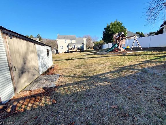 Immaculate 4-bedroom, 2.5 bath home in an established and well sought after neighborhood community! This home features high ceilings with tons of natural light on both levels! With a sitting room, formal dining, updated kitchen with granite counter tops, and a living room on the main level it offers plenty of space to entertain or convert into a playroom. Primary bedroom boasts its own private bathroom and large closet and is met with tall ceilings, providing a massive feel. Enjoy the peace and tranquility as you sip your coffee on the beautiful back deck overlooking a sprawling back yard! Huge storage building is wired and has plenty of space for your lawn maintenance tools or seasonal decor. The playground is also included! You won't want to miss this, so schedule your showing today!