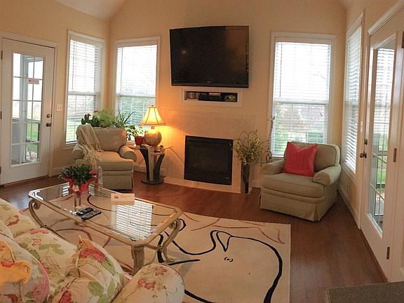 Open & Bright Ranch Home with Bonus Up. Enjoy your Coffee & Cocktails in the East-Facing Sunroom with Cathedral Ceiling, 2 Gas Fireplaces, & Wet Bar! Each Side of the Sunroom has French Doors that Open to 2 Screen Porches! Private Yard! Living Room has 11' Ceilings, Gas Fireplace, & is Very Open to Kitchen & Dining! Kitchen has Pretty Maple Cabinets with Rope Trim, Solid Surface Counters, Tile Floor, Stainless Appliances that Convey, Pantry, Pot Drawers, Pull-outs & Breakfast Bar! Master has Large Walk-in Closet, Soaking Tub, Walk-in Shower, & Long Maple Vanity. Guest Bed 2 has Private Access to Screen Porch! Laundry has Maple Cabinets, Large Bonus Room above Oversized 2 Car Garage w/Workbench & Closet!
