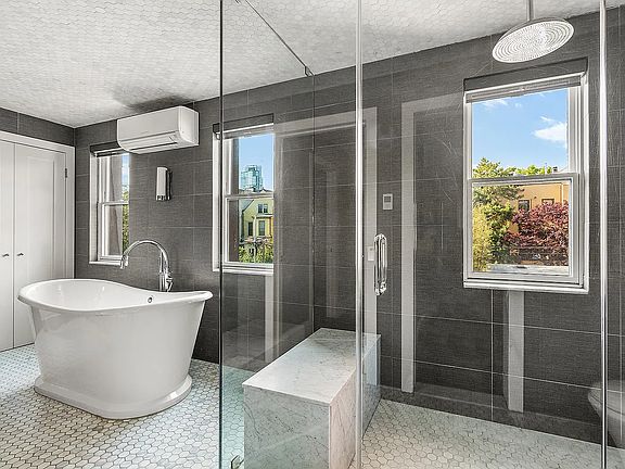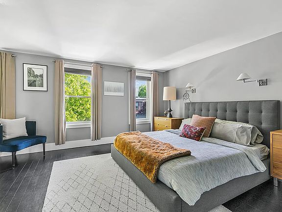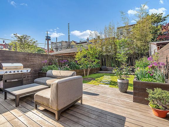 Welcome to 109 Oak St, a private oasis on the most coveted street in Greenpoint. Oak St is a short, tree lined block with little traffic and only steps from Franklin Street. This thoughtfully and stylishly fully renovated one family townhouse has everything you could want in your new home. Starting with the ground floor which features a home gym, a spa style full bathroom, laundry and an egress to the beautiful backyard. The first floor is an open concept living space with a kitchen featuring a Viking stove, a Sub Zero refrigerator, matched to the cabinets, a wine chiller and an oversized, marble top island. Glass doors lead you out to the ipe wood, covered deck. There is also a custom half bath on this floor. The large primary bedroom and bathroom create a whole floor of luxury living. The hammam inspired bathroom, which spans the full width of the house, features a steam shower, a free-standing modern bathtub and a double vanity from Restoration Hardware. The South facing bedroom is large and bright. Additionally, there is generous walk-in closet with plenty of shelves and hanging bars. The top floor has two king sized bedrooms, a full bath and an office, all windowed and bathed in light. The finishes in this home are top notch. Italian linen porcelain tiles line the bathroom walls, wide oak flooring throughout, bespoke storage cabinets, a custom oak, shaker style stairway. And the list goes on. Steps from Franklin St and such popular spots as Ramirez, Chez Ma Tante, Paulie Gees, Ferox Gym. Close to McCarren Park for the dog park and farmer's market, Five Leaves, Calexico, Bernie's and so much more.
