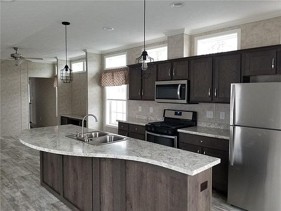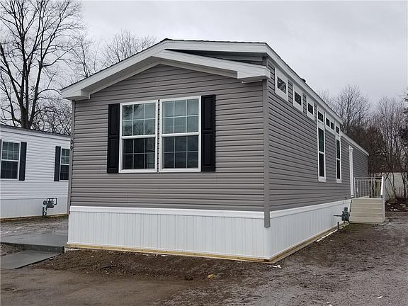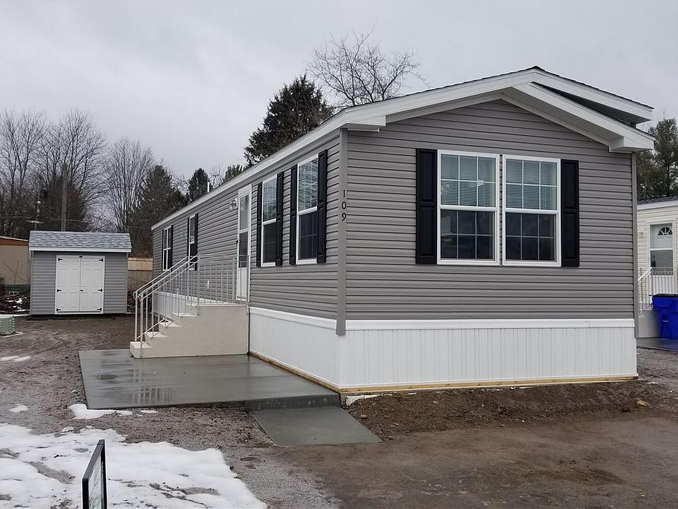 UNIQUE BRAND NEW HOME- Everyone says "Wow" when they walk in this one. Check out the photos with upgraded Transom Windows and Ceilings. Bring your Pickiest Buyers. 2021 "HIGH END" MANUFACTURED HOME. Lot Rent INCLUDES Real Estate Taxes on the Home. Thousands in Upgrades. Opportunity for Homeownership-Less than Renting on this Brand New Home. Great Financing Programs may be available with Lenders with good credit scores 620+ with as little as 5% down payment. Lot rent of $410 INCLUDES TAXES on the home *16' x 68' with an Open Floorplan * 16' is 2' wider than a typical 14' Single Wide Home= spacious rooms * 2 Bedroom/2 Bathroom * Stainless Steel Appliance Package-includes Gas stove, Refrigerator, Dishwasher, Microwave over the Stove * Washer and Dryer * Transom Windows * Concrete Patio * Upgraded Vinyl flooring throughout * Upgraded Insulation and OSB Exterior Sheathing/Wrap* New Vinyl Shed * Home Can Not Be Removed from Shadybrook Estates * 25lb Dog limit and 2 pet limit in Park * Final Grading and Seeding of Lot to be completed.