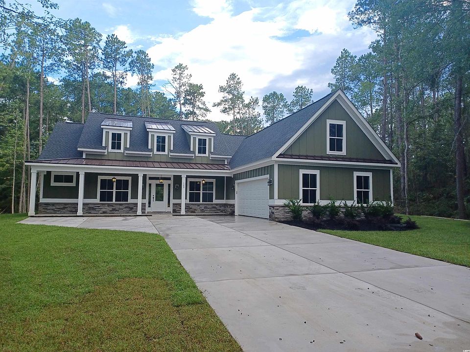 NEW CONSTRUCTION! Expected Completion date End of May. HVAC, Plumbing, Electric, and Shingles Completed. Siding going on April 15th. 3 bedroom 2 bath house, formal dining and study room. Front and back porches with a huge garage. Tray ceilings in master bedroom and study. 10' ceilings in living room. 5 -1/4 crown molding in master bedroom, study, kitchen and dining room. Wood trimed windows. Gas fireplace with shiplap accent. Granite counter tops with farm sink. Tile shower in master bath with stand alone tub. Gas tankless hot water heater. Ice white shaker cabinets with matte black hardware. Matte black light fixtures and door hardware throughout. Hardie cement siding with ledgestone accents. This home is beautiful and has the best curb appeal sitting in the woods with a pond in the backyard makes it a homeowners dream.