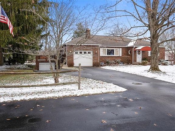 If you appreciate the solidity and substance of a brick home, you'll be smitten by this inviting Neshannock township ranch. Solid 1950's construction and replacement windows keep energy loss to a minimum. Entry on to the slate tile reveals a sun soaked south facing living area. You'll enjoy a favorite lounging spot in front of the fireplace and entertaining is easy with its fluidity into the dining room. Boasting a walk-in pantry, storage is a dream in this kitchen! Oak construction, with dovetailed joinery, ensures the cabinetry will withstand the rigors of day to day living. The stainless appliances are included. The neutral carpet is cozy, although hardwood floors can be found in the dining room. A bright and beautiful bathroom boasts a solid surface tub surround that is a snap to clean. Accompanied by a second fireplace and full bath, a huge family room and workshop are perfect for hobbies. Storage is found in the balance of the walkout basement and in two single-car garages.