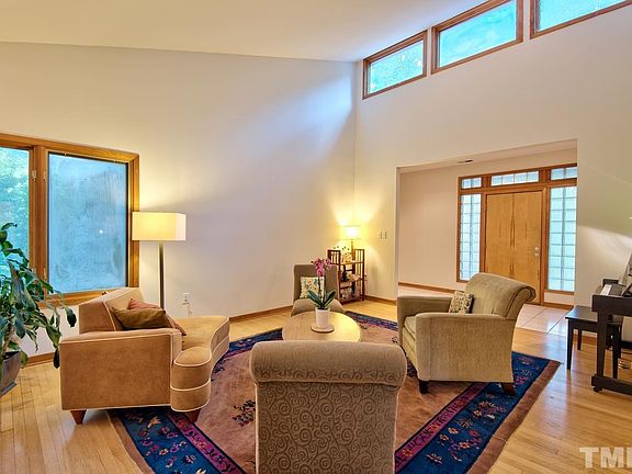 Passive solar contemporary home in Ironwoods backing to Bolin Forest. Lg Windows. 1st Flr Master, Hardwd Floors, Built-in Bookcases, Open Kitchen. Separate Office w/built-ins. Fully-equipped one-bedroom apartment w/inside & outside entrance. All AC & water heaters & paint. Poured concrete foundation & more! Garden area. Fantastic neighborhood w/access to miles of trails in Bolin Forest & CH North. Minutes to Carrboro & downtn Chapel Hill.