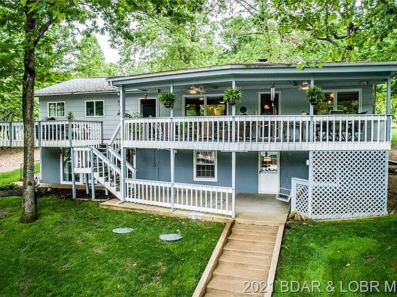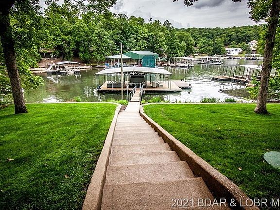 What a wonderful lakefront house located in Lake Ozark and Downing Branch Cove. This house offers 4 bedrooms and 3 full bathrooms with 2,368 square feet. There is a large, covered deck located off the main level that creates a wonderful, shaded space to enjoy the lake. There is an attached 2 car garage and a detached 2 car garage with tool shed underneath. Besides the garages, there is plenty of parking on the concrete driveway. Included is a 2 slip dock with a PWC slip. Two boat hoists and one PWC hoist are included. The dock is located in a nice cove that offers plenty of calm water for friends and family to enjoy the lake. The recently updated kitchen features painted cabinets, granite countertops, stainless steel appliances, and a tile backsplash. The main level features gorgeous wood floors throughout. The master suite is located downstairs and features an oversized jetted tub, walk-in shower, and view of the lake.