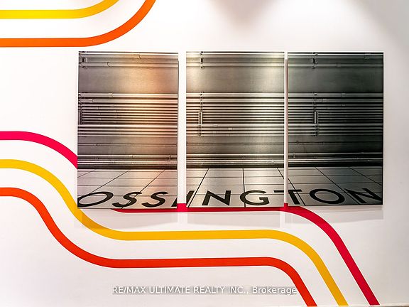 Trendy Ossington Village. Suite that offers 1 Bedroom plus Den (as per Builder) facing Ossington Ave. This 531 sq.ft suite plus 31 sq.ft balcony is steps away from restaurants, night amazing night life, Trinity Bellwods park, Roof Top Terrace, Common Lounge, Party Room with Kitchen, Meeting Room, Security, Visitor Parking