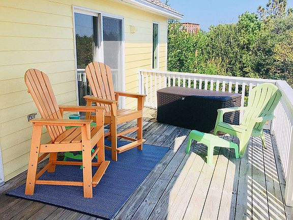 6th Row from private beach access. Completely renovated from Hurricane Florence - all new architectural roof, new ceilings, insulation and drywall, new LVP flooring, new storm windows throughout home, all new interior and exterior Benjamin Moore paint, new fireplace and mantle, new white shaker custom bathroom vanities with quartz countertops. New sinks, toilets, and all new Moen hardware in all bathrooms. Fully equipped kitchen with all brand new stainless steel appliances, granite countertops, under mount blanco sink, and marble backsplash. Fully equipped with everything for your cooking needs. Internet, cable, tv, and half bath on top floor. All new updated living room furniture. 2 decks on top floor to relax and listen to the ocean. Master Bedroom - Pottery Barn seagrass bed and bedding with Tempurpedic Flex Supreme Hybrid King mattress. Private newly renovated full bath and vanity, walk-in closet, and private deck. Flat screen TV with remote and Dish Network cable. 2nd bedroom - 2 queen Pottery Barn Santa Ana seagrass beds and bedding with Tempurpedic Flex Supreme Hybrid Queen mattresses. Private closet and sliding door to deck shared with 3rd bedroom. 3rd bedroom - Full and twin bunk beds, with Pottery Barn coastal bedding , closet and sliding door to deck shared with 2nd bedroom. Additional mattress under bunk beds Brand new Samsung stainless steel washer and dryer units. Outdoor shower and Hot Tub!!! Picnick table under carport for family outdoor gatherings. Carport closet stocked with beach accessories (rolling igloo cooler, kids beach toys, and beach chairs). 1-3 minute walk to private beach ramp (handicap accessible) Available for weekly beach vacation rental.
