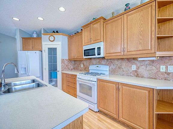 Presenting a fully developed Jayman built family bungalow encompassing 1265 sq ft above grade, situated on a tranquil street featuring a wider pie-shaped lot at the rear. This property offers an open floorplan that includes expansive living and dining areas, a well-appointed kitchen with a raised breakfast bar, and a primary suite with an extensive walk-in closet, a four-piece ensuite bath equipped with a large soaker tub, and a separate stand-up shower. The living room is further enhanced by a feature gas fireplace. The lower level boasts complete development with a separate entrance, two generously sized bedrooms, a full bath, a spacious family room and additional storage. The property is complemented by additional concrete space at the front, providing ample parking and a larger rear lot. There is a sizable double attached garage so really you can park up to 5 cars. The exterior shingles and siding have been recently updated following a hail claim. Located in the desirable area of Panorama Hills, this residence offers convenient access to major traffic routes, the airport, shopping centres, public transit, schools, restaurants, and the Vivo Family Recreation Centre.