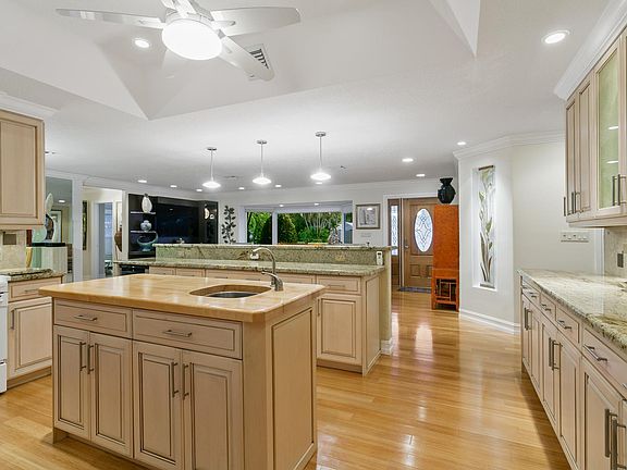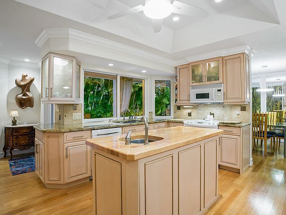 Beautiful 3 Bedroom 2 Bath Pool home with oversized 2-Car Garage in intimate coastal community of 28 homes on Private dead-end Street. Custom renovated and meticulously maintained home conducive to entertaining. Features lots of natural light, recessed lighting, luxury Hardwood Bamboo flooring, crown molding and specialty trim finishes. Open Concept Kitchen overlooks living, bay window and features pass-thru bar to pool area, European Wood Cabinetry with custom pull outs, Granite countertops, Tumble stone backsplash, Breakfast bar, Wet bar, Pantry and Laundry room. Spacious Master suite opens to pool area with E/W exposure, new carpet, over-sized walk-in closet and Frameless walk-in shower. Split Bedroom plan has Foyer entry to 2nd & 3rd Bedrooms share 2nd Bath.