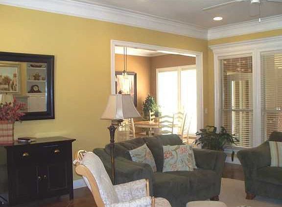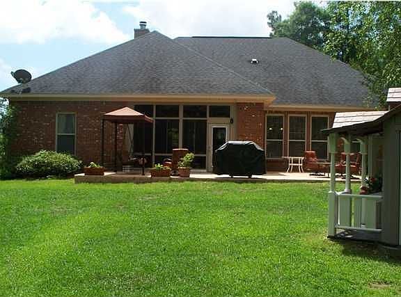 Custom built open flowing floor plan w/gorgeous scored concrete floors throughout except bedrooms. Lg kitchen w/custom cabinets, granite, gas cook top & lg pantry. Office w/built-in bookshelves. Glassed in back porch w/fireplace & built-in grill. Stamped Concrete patio w/country views. Lot adjoins lake. Lots of privacy.