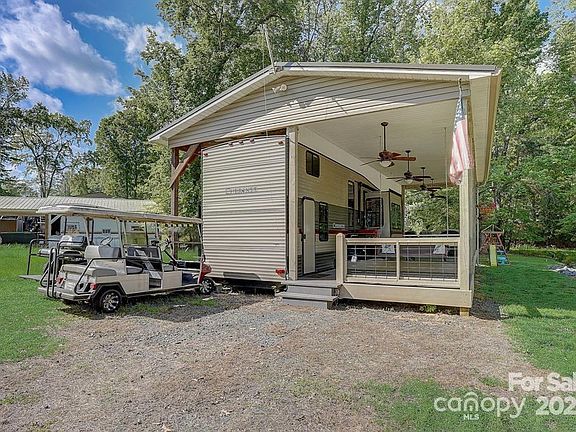 Welcome to your perfect getaway in Twin Harbor on Lake Tillery. Start with the oversized single level lot at .13 Acre. Almost twice the size of a regular lot. Step onto the expansive deck with 4 ceiling fans & lights for your comfort. Swing, picnic table, L-shaped couch, table with power, small refrigerator, 3 side tables to remain. Inside you see the 2019 Forest River Destination Camper. It is beautiful! All furniture and tv's to remain. Full size kitchen appliances, queen in primary, w/d connection in primary, plenty of storage throughout, real potty, elec fireplace, 2 recliners, 2 sofa sleepers, surround sound. Swing set fire pit out back, swing out back and 2 grills. Must be with realtor to gain access to the community. The golf cart is available for an additional $4k.