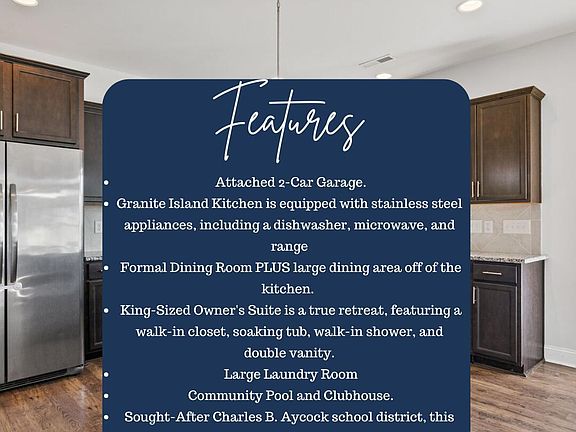 Welcome to this beautiful home in the desirable Gander Lake community! This spacious 4-bedroom, 2.5-bath home offers over 2,200 sqft of living space and an attached 2-car garage. Step inside to a welcoming entry foyer that leads to an open-concept living area. The stunning granite island kitchen is equipped with stainless steel appliances, including a dishwasher, microwave, and range—perfect for entertaining and everyday convenience. Enjoy the formal dining room PLUS large dining area off of the kitchen. The king-sized owner's suite is a true retreat, featuring a walk-in closet, soaking tub, walk-in shower, and double vanity. Upstairs, you'll find a large laundry room and generously sized bedrooms. Enjoy all that the Gander Lake neighborhood has to offer, including a community pool and clubhouse. Located in the sought-after Charles B. Aycock school district, this home is a must-see! Schedule your showing today!