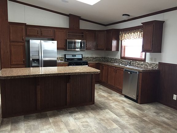 Brand new 3 bedroom, 2 bathroom multi-section home with open floor plan and beautiful features, including cherry cabinets and crown molding throughout the home. Well designed kitchen includes all appliances, and center island. This home is set on a frost free concrete foundation and has an 8x10 deck in the front. 15-month warranty. Monthly lot rent is $395 which includes city water/sewer and garbage service. Credit and criminal check required