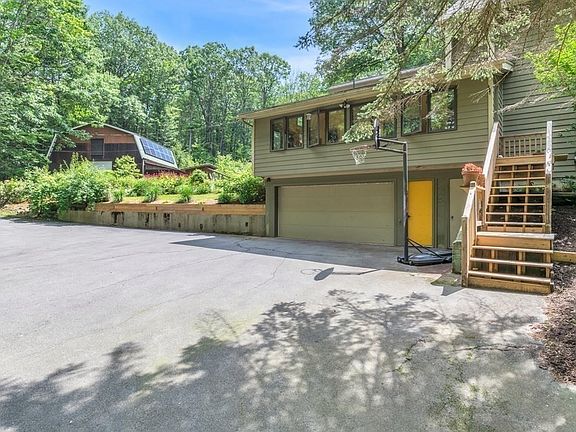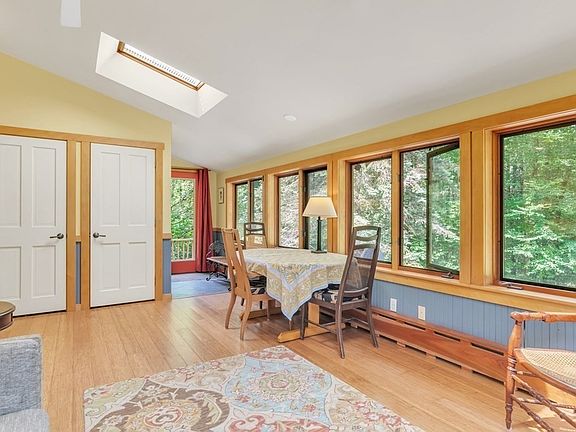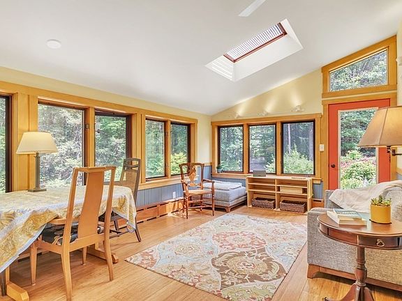 Nestled on 8.5 acres, this light filled and charming contemporary home bursts with warmth and comfort from the first step into the sun soaked family room. The custom woodwork throughout is unique and the kitchen is central to the home. Off of the kitchen is the sunken living room, perfect for relaxing or entertaining, with a majestic fireplace with wood burning insert. Step on through to the gorgeous, private screened in porch with cathedral ceilings and access to the back yard. The primary bedroom is on the main level with a newly renovated office off of it. The first floor bath is connected to the primary and the laundry room. Upstairs are two more bedrooms with another full bath, plenty of space for everyone. There is a utility room in the basement, along with the garage and storage space. The barn offers plenty of potential, Solar is owned. Custom chicken coop stays. The property borders multiple trails throughout the woods and easy access to them for outdoor pursuits.