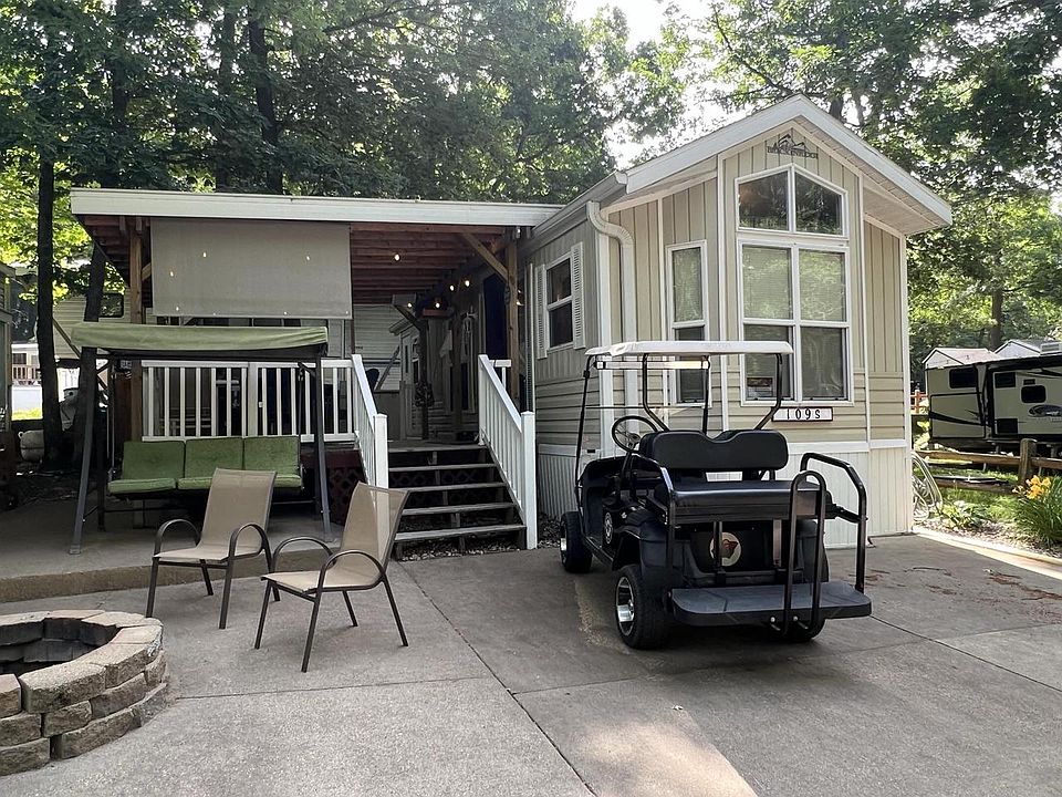 Home away from Home! Bring your family to enjoy all the amenities of Jellystone Park! This 2002 park model offers 1 bedroom, 1 bath, kitchen and living room. The covered deck makes a great entertainment space! Enjoy the firepit on cool nights. The park offers fun for everyone: swimming, playground equipment, mini golf, waterslides, skate park, planned activities and more. Yearly park fee applies - currently $1090 per year.
