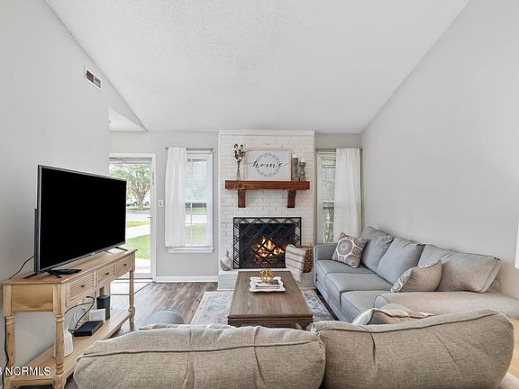 Charming duplex minutes from Camp Lejeune, shopping, and restaurants. This tastefully remodeled two bedroom two bathroom duplex is sure to impress. As you enter the home you will notice LVP flooring throughout the living room and a wood burning fireplace. Lots of cabinet space in the kitchen with a cozy dining nook. The backyard has a utility closet for storage and a back patio There is a washer and dryer closet in the hallway. A new roof was installed in 2018. Schedule your showing today!!