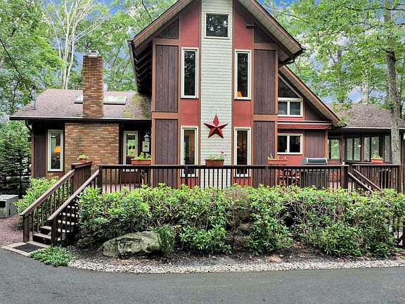 WELCOME TO YOUR LAKESIDE SANCTUARY - A TRULY SPECIAL PLACE TO ESCAPE TO JUST 90 MINUTES TO NYC; A PERFECT FULL TIME OR PART TIME RESIDENCE! A 3 bedroom (with bonus room), 2 bath, luxury LAKEFRONT estate boasting more than 2,300 finished SQFT and a lower level of more than 1,300 SQFT that could be finished. This beautifully landscaped property combines rustic elegance with modern conveniences. The main floor features a spacious primary bedroom suite with an attached full bathroom, views of the lake, a propane fireplace, his and her closets plus another walk-in-closet. A formal dining room is complemented by cathedral ceilings and rich wood accents throughout. Enjoy the warmth of a second brick faced fireplace in your spacious living room with access to your large back deck with water views. Your open concept kitchen, dining and screened porch allows for tons of family and friends to come and enjoy this property. Upstairs, a loft, a second full bathroom, a SAUNA, two more bedrooms and a bonus room. The only permanent dock on the lake provides exclusive access to the water, while two single-car garages and a large storage shed offer ample storage for boats and other equipment. The home's exterior boasts a front porch, back deck with shade awning, and screened-in porch, perfect for soaking in the serene lake views and abundant wildlife. The flat, usable lake frontage adds to the property's appeal, making it ideal for outdoor activities and relaxation. Custom WATERFALL with remote control! Whole house generator! Located in the desirable, gated Conashaugh Lakes community, this home offers access to a wide range of amenities, including fishing lakes, a community pool, and various sports courts. Just a short drive to historic Milford, you'll have access to fantastic dining options, shopping, and cultural events, all while being surrounded by the natural beauty of the Pocono Mountains.