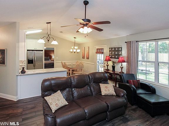 Come see this wonderfully updated house in Foley. This beautiful 3 bed/2 bath split floor plan home is ready for its next owner today! Updated cabinets, granite counter tops, and tile back splash are perfect for home cooked meals and guests. Ceramic plank flooring and new light fixtures create a cozy and welcoming living space.Master suite has a gorgeous walk-in shower, two walk-in closets and double vanities. The back yard is plenty large enough to play, entertain, or just relax comfortably behind the privacy fence. The house is conveniently located near the hospital and a short drive to Gulf Shores, Fairhope, and less than an hour to either Mobile or Pensacola. You don't want to miss this house!