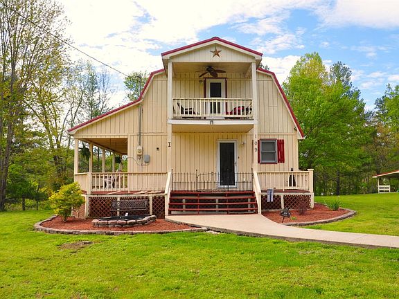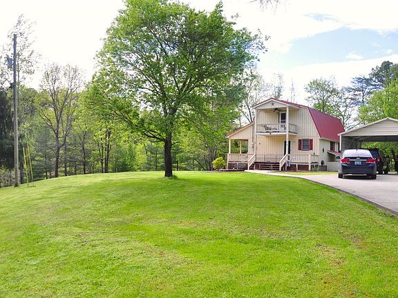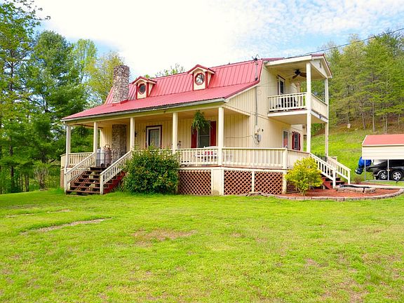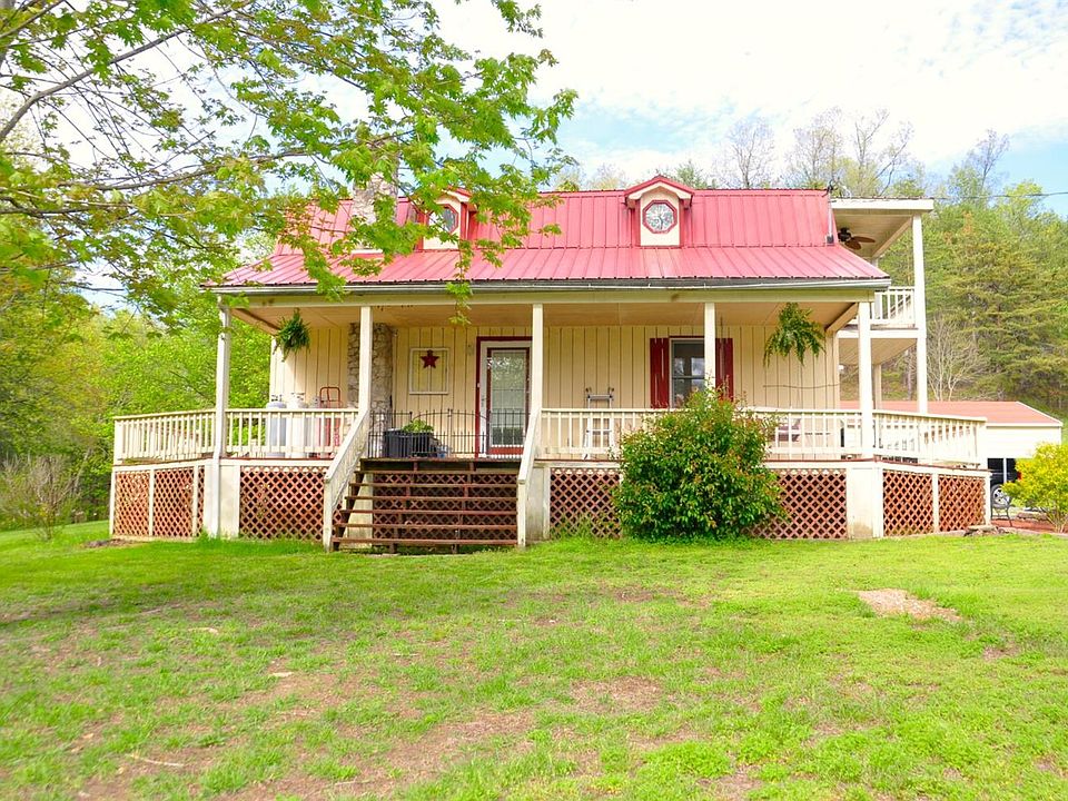 Located right off of Hwy 205, just minutes to either West Liberty or the Mountain Parkway, this hidden gem has so much to offer! With wood flooring and wooden trim on ceilings and walls, it has the perfect cabin in the woods feel without the middle of nowhere location! The bright, open kitchen has pantry & eat in area. The living room opens to soaring ceilings, custom windows, and a gorgeous fireplace as the focal point! One half bath & bedroom located downstairs, as well as separate utility room. Upstairs, the master suite with full bath & office area has its own balcony! The wrap around porch completes the picturesque farmhouse look & offers great views of the large flat yard, which is 2 acres m/l! A storage building with electric and attached finished room with large porch that would be perfect for family cookouts! An additional open front shed, easily made into stalls! This home packs a lot of punch into a small size, perfect for those looking to downsize or a starter home!