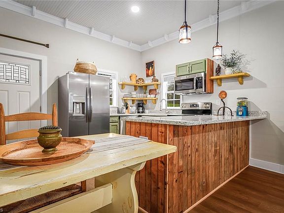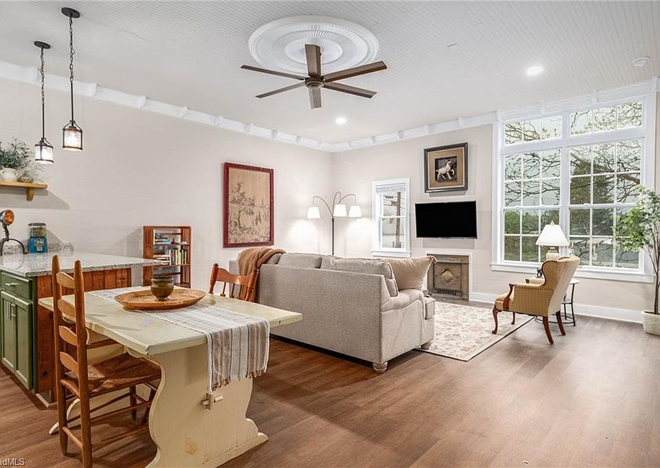 Offer deadline: Monday, 6/26/2023 at 5pm. This adorable, open floorplan home is a fully-furnished short term rental, one block from the Deep River and Deep River Greenway. Located in Franklinville's historic mill village, this building was a neighborhood store in the early 1900's. General contractor completed a full renovation in 2023 (certificate of occupancy available). Original wall planks were reclaimed and used in construction of the kitchen bar. Ceiling in the main room is original to the building. Convenient to antique shops in Asheboro and Liberty, the NC Zoo, and Hwy 64. All household goods, furniture, washer/dryer, and decor, with the exception of linens, convey with property. Keep as a short term rental (all 5 star reviews from guests) or claim it for yourself and move in! All appliances are still under manufacturer's warranty. Listing agent has a financial interest in property.