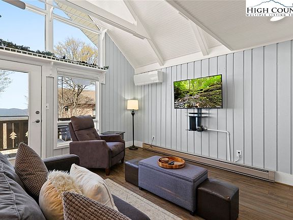 Best Views on Beech under $500k!! VIEWS AND LOCATION - Step out on the back deck to take in the layered long-range views and you might forget you are less than 2 minutes from the Beech Moutain Ski Resort. This updated townhome comes fully furnished and is turnkey-ready for your vacation and guests. The kitchen was stocked by a chef, so it is well equipped for any cooking you may wish to do. The views from the dining table alone make it a great place for your morning coffee or work from home while taking in the view all day. The lower level has the primary bedroom and guest room. The twin beds have a king converter in the closet to make it flexible. New stackable washer and dryer included. All TVs are flat panel, mounted, and Smart TVs. The upper loft bedroom has an attached half bath. Each level has a coffee station for you and your guests. New mini-split units on the main floor and loft heat and cool all year. Level parking, a stone path, and just a couple of stairs to get inside. Keyless entry. Club membership is current and can be transferred. Call the club to ask about current dues. The owner is an NC licensed Broker/Agent.
