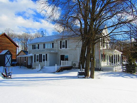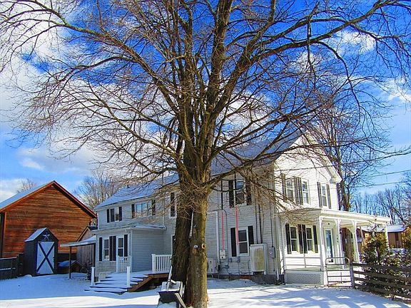 This super sunny Granby farmhouse has plenty of room for everybody! The flexible floor plan has 3 first floor bedrooms on the 1st floor plus a primary suite on the second floor and an accessory apartment (700 sq.ft) also on the second floor. Beautiful hardwood floors, updated bathrooms and kitchen. This home would lend itself well to multi-generational living or rent out the accessory unit for the additional income as it is a legal 2-family with separate utilities. The fenced in yards (front & side) are large enough for animals, pets or kids! 3 storage sheds, an open front porch, side composite deck and patio for seasonal outdoor living. Conveniently located near route 202. Owned solar panels help with electric bills.