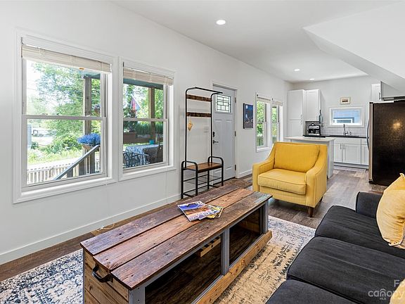 Modern Craftsman in prime Black Mountain location, short distance to town! Incredible home in a wonderful community to live or to use as short term rental with no restrictions (buyer to verify). Primary bedroom and bath are located on the main level while the two bedrooms and bath with walk in shower are located upstairs. Open concept living room and kitchen create the opportunity for the home to live larger than its footprint. Enjoy al fresco dinners on the covered front deck while listening to the babbling brook in the side yard. The backyard is fenced and offers privacy on the back deck. A shed is also included. Downtown Black Mountain is moments away and there is easy access to the Flat Creek Greenway which is a part of the Black Mountain Greenway system. All furnishings, artwork and stocked supplies (kitchen to bathrooms) can be included at an additional cost to have a turnkey rental and instant income during a high season! Contact agent for previous year rental numbers.