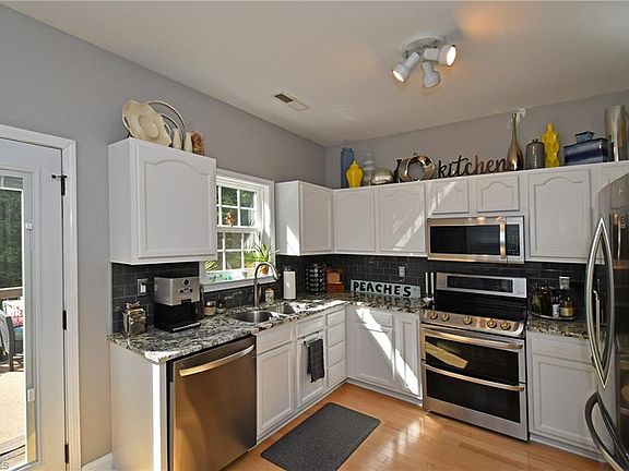 Remarkable updates! Immaculate & move in ready! Beautiful hardwoods throughout main level w/vaulted ceiling in LR. Updated eat-in kitchen w/gorgeous granite & SS appliances. En-suite has double closets and spa like bathroom! Floating cabinet, double sinks, Large walk-in shower with double shower heads. Lower level has finished workout room! Daylight walkout basement, privacy fenced back yard and deck for entertaining. Close to Wake Forest Campus! Washer, dryer & fridge to remain w/ acceptable offer.