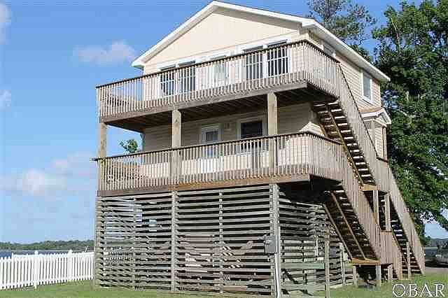 Affordable well maintained canalfront home in Colington Harbour! Spectacular water views in all directions! Multi-level decking on both front and back. 44 feet of canal frontage w/good bulkhead, ready for your boat! Reverse floor plan home, many improvements include- siding, decking, paint, doors, some windows, one HVAC unit. Water side master bedroom w/deck access. Located on super quiet cul-de-sac outside of the gated community. The Colington Harbour amenities include: Clubhouse, marina w/boat ramp, saltwater pool, tennis courts and soundfront beach! This home is must see! **Adjacent canalfront lot (107 Princess Ct.) may be purchased with home.