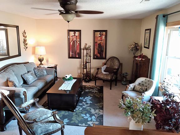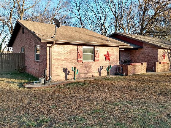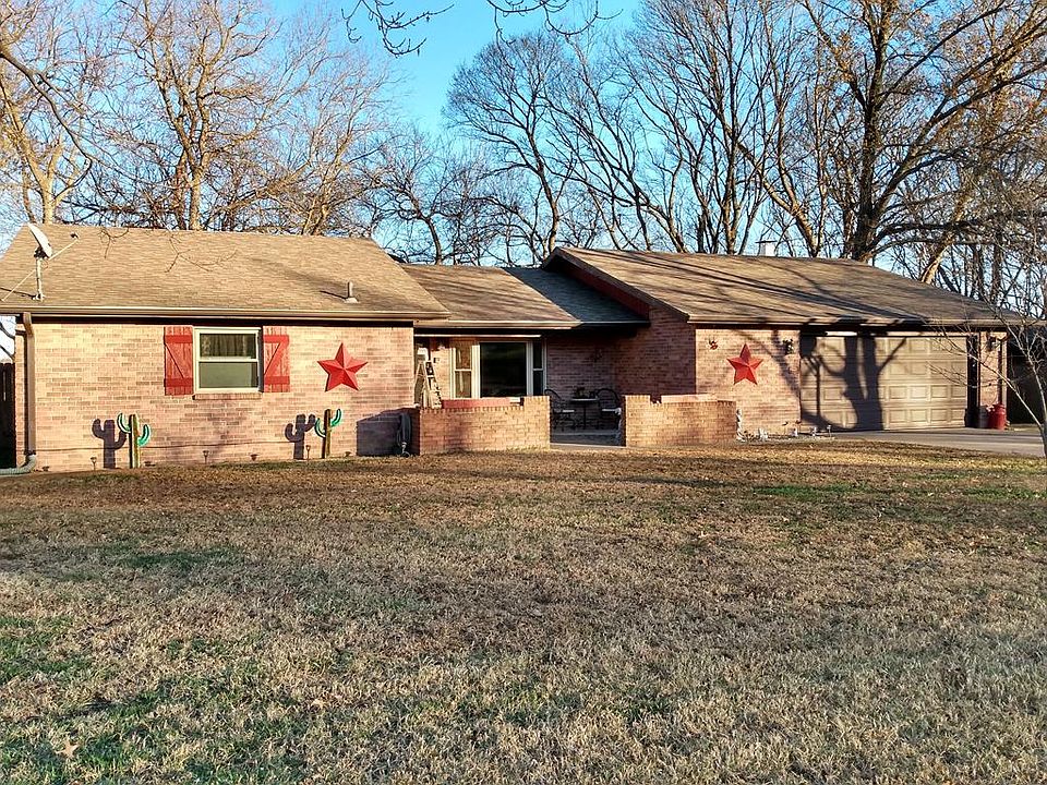 Sit on your covered patio and look out to the country setting, this home sits on paved county road in town. Brick ranch with two living areas, formal dining room, kitchen with bar. Formal living room on front of the house away from the kitchen, so guests don't see your kitchen upon entering the house. Kitchen is on the back of the house and opens to the family room with a fireplace. This home has a perfect set up for entertaining. Master bedroom with private full bath. Patio doors off family room to wonderful backyard with view of open pasture. Ceramic 18" tile flooring in kitchen & bath. Two full baths. Blown in attic insulation, 7" thick on top of existing insulation. Newer (2012) windows with lifetime guarantee. Many upgrades within the last 10 years. Newer refrigerator. Seller had new guttering installed in last 5 years and purchased new 12'x16' she shed w/loft storage that you will love! There is also another 8' x 10' shed for lawn equipment.