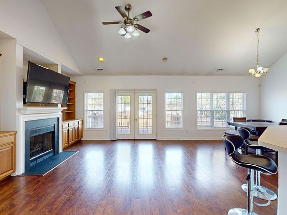 This inviting residence features 3 bedrooms, 2 baths, and a spacious bonus room. The principal bedroom boasts a tray ceiling and a generously sized walk-in closet, while the ensuite bath offers two separate vanities/sinks. The living room is adorned with a gas fireplace and elegant built-in shelves/cabinets on each side, wired for surround sound. Upstairs, a large bonus room provides flexible space, and the convenient laundry room includes built-in cabinets.