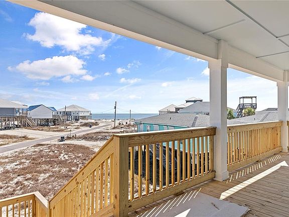 GOLD FORTIFIED new construction on popular Dauphin Island. Estimated completion date October 2021. Relax and enjoy the stunning views of Gulf of Mexico and the Mississippi Sound. You are not going to want to miss the sunrise from the front porch and the sunset from the back porch. The island's pristine white beach is just steps away from the front door. Elevation clearance from bottom of house to ground is 15'. This gorgeous split floor plan has 2152 square feet and five bedrooms and three full baths. Main living areas features 10' ceilings while the bedrooms have 9' ceilings. Roof will be a 26-gauge metal roof. Includes luxury vinyl flooring throughout, GOLD FORTIFIED and front and rear covered porches. A transfer switch will be installed for buyer to add a whole house generator. Listing agent is related to builder. All updates per the seller. Listing company makes no representation as to accuracy of square footage; buyer to verify.