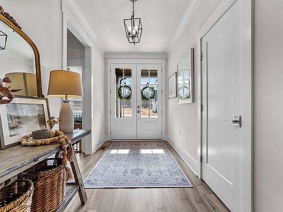 Welcome to the Modern Farmhouse! Stunning custom home- less than a year old- situated on a large, wooded lot. Designer touches throughout with plantation shutters, 10-ft ceilings down, luxury flooring, tilework, and a chef's kitchen with scullery that is beyond belief! Tons of natural light and beautiful finishes. FIRST FLOOR PRIMARY BEDROOM AND GUEST RM. Enjoy coffee and cocktails on the beautiful screened porch that overlooks a private, wooded backyard. And pond views! Fully fenced and landscaped. Two additional rooms, bath, and HUGE bonus upstairs. 1300 SF of walk-in storage- great for storage or option for future expansion. This home is immaculate and shows like a model!
