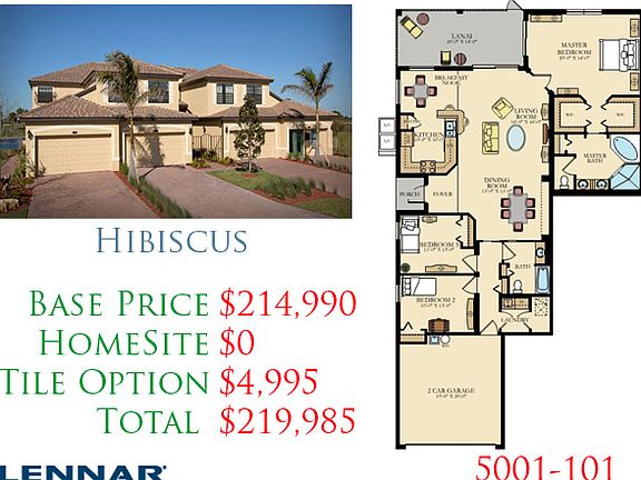 Coach Home from Lennar Homes. 3 bedroom, 2 Bath and a 2 car garage. Homesite 5001. Hibiscus Floor plan.