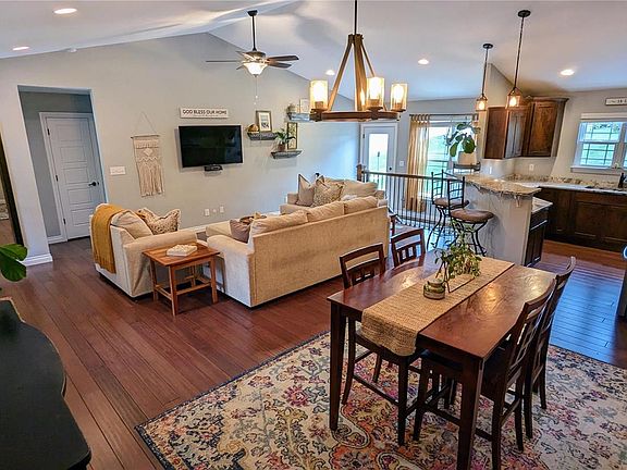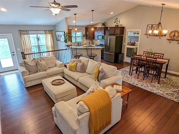 Better than new & just in time to enjoy the season, this truly move-in ready home is ready to be yours. You'll love the open concept & vaulted ceilings for entertaining and the split-bedroom design can be a game changer. Modern kitchen with granite countertops and stylish cabinets where you can create and still be at the party plus the kitchen appliances stay. Enjoy your coffee at the breakfast bar or on the covered front porch. Oodles of windows for all the natural light you love. Convenient main floor laundry room and extra storage above the garage for all your decorations. Invite all your friends to grill, laugh, chill and play in the backyard and on the enlarged back patio and you'll appreciate the pride & time invested in the beautiful landscaping and added trees (the back 3 are cherry!). When its time to play inside, take the party downstairs to the huge rec room. Too much more to list. Call your favorite agent today to schedule your private tour to see it all.