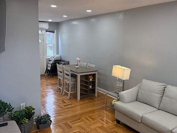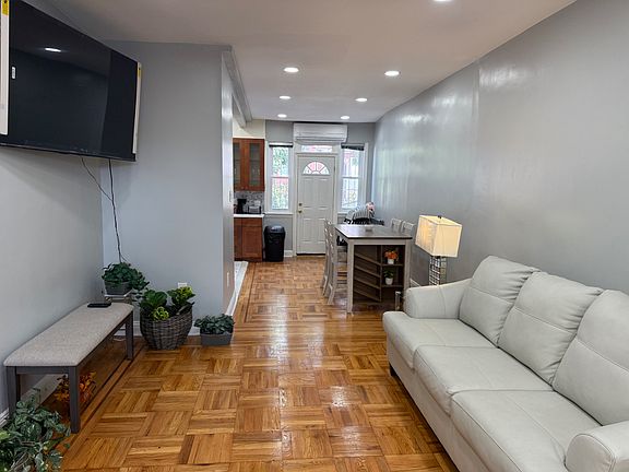 Newly renovated 3 br 1.5 bath townhome conveniently located near most transit authority venues, such as the number 3/4 trains as well as A/C trains (few blocks away). Beautiful redone hardwood floors. Comes with brand new TVs in each room/furniture/beds/kitchenware/dining room set. Large living room spaces and pristine bathrooms. Also balcony on the back porch for nicer weather. Can sit unbothered by rain on the front porch as there is a fully covered awning. Surrounded by multiple authentic dining options just blocks away. Renter responsible for utilities. No smoking allowed. 6 month to 12 month lease preferred (can negotiate terms).