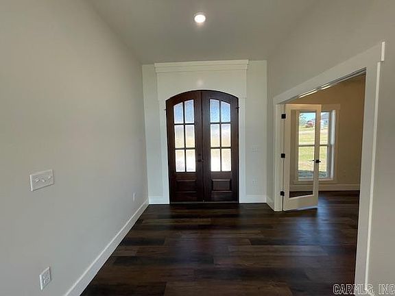 High Speed Fiber in this neighborhood! This floor plan is perfect. Office is at the front of the house behind double glass doors. Vaulted ceiling in the living room with a wood beam. Electric fireplace with brick and shiplap. Kitchen has all the extras, hidden pantry, lots of storage with drawers for spices and utensils. Large laundry with a sink and walks through to the master closet. Separate tile shower with soaking tub. All of this on an almost on almost 1 1/2 acre. Don't forget the large back porch with vaulted wood ceiling. Wood under the front porch ceiling as well. This lot has a beautiful view of a pasture.
