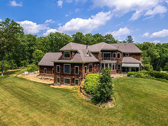 Mother Nature is on display at this private West End estate on 33.5 acres adjacent to trails & conservation land. The stately craftsman style residence overlooks it's own ponds, lawn, gardens, woods and distant view of Turkey Pond. The architectural interest in the interior spaces is just beautiful w paneled rooms, crown moulding, built in cabinets, copious walls of bookshelves 10' ceilings & decorative hardwood flooring. Seller is an author & professor of food history w/a specialty in French cuisine - the kitchen demonstrates this perfectly. Countless decorative cabinets, top notch appliances, island, floor to ceiling pantry, curved bank of windows, bookshelves galore, two exterior doors to porch & stone patio. A cozy fireplaced sitting nook is a welcome corner. Living rm has distant pond views, bookshvs. Decorative ceiling in large dining room. The primary bedrm suite has it all, 2 dressing rooms, separate sinks & closets, walk in shower & steam shower, view. Stunning front & back staircases. Astonishing 2nd floor library w separate study/office & balcony overlooking your domain. 3 more bedrooms, one en suite, plus classicly tiled 3rd full bathrm. Possible above-garage bonus area. Walk out high posted LL was a woodworking shop, could transition to art/yoga/exercise/hobby or playroom. An in-law/au pair suite is roughed in with plumbing & electricity. Geothermal heating w/propane furnace backup. Security system, A/C, irrigation, 2 wells. One of a kind expanse.