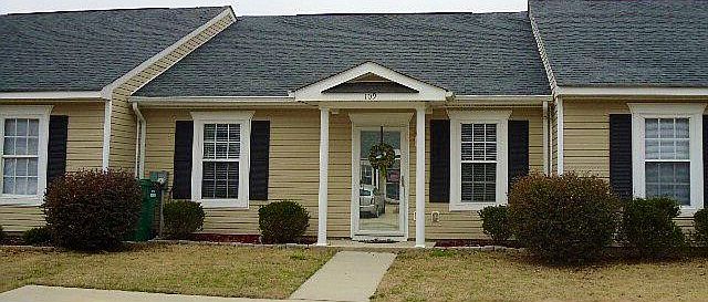 Cute, low-maintenance home with easy access to Uptown and the Bypass! Welcome to 109 Rhett Court, a one level, 2bd/2ba interior unit with a bright and open floor plan. Inside you'll find a kitchen with counter space galore, thanks to a wide breakfast bar featuring lots of drawers, cabinets, and power outlets. Off the main entry is a pantry/broom closet for added storage. Beyond the kitchen is the first bedroom - with well-maintained carpet - a full bath, and a great sized laundry room. Follow the laminate floors through the dining room and into the living room, highlighted by cathedral ceilings and double doors into the backyard. The master bedroom is generous in size and contains an ensuite and walk-in closet + attic. Need more storage? Off the backyard patio is an additional storage closet. HOA fees are a low $25/mo. This home is move-in ready and priced to sell, so schedule a private tour of 109 Rhett Ct today!