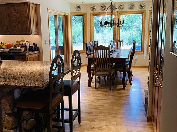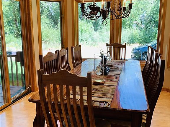 Extraordinary custom home in gorgeous Saratoga, Wyoming on the North Platte River. Custom features include: lighting throughout house with dimmers. Hardwood cabinets. 3 Fireplaces: 2 natural gas programmable, 1 great room, 1 master bedroom, 1 great room, 1 wood burning outdoor patio area. Rain Bird lawn irrigation system. River Rock sheath outside front of house. River rock fireplace (interior/exterior fireplaces). River rock kitchen island/master bath office area. Knotty Pine ceilings in master bedroom.